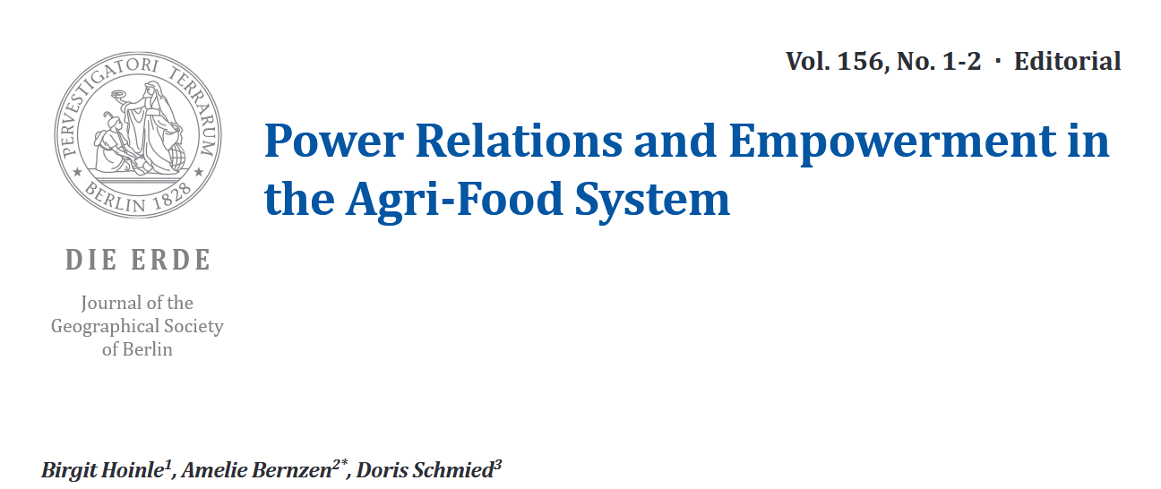 Recently published: Special Issue Power Relations and Empowerment in the Agri-Food System